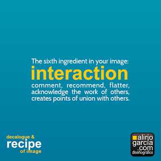 All Decalogue governs the rules, regarding behavior that is expected to take members, members or participants of the action-specific space-time. But these rules, if they arise from another perspective, they are also guides that indicate the desired path. They are recipes or articles that seek to improve specific aspects, the sum of the parts or the whole general. That is why it Decalogue image, turn serves recipe for anyone who is interested in strengthening its projection and build more effective communication. six ingredients currently include: